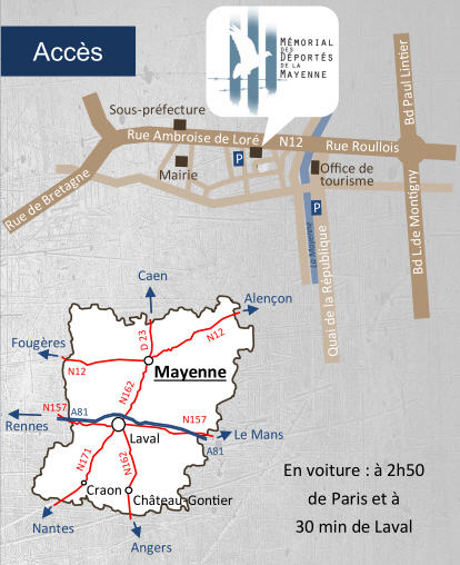 Ouvert en 2012, le Mémorial des Déportés de la Mayenne est un site de visite, pionnier dans le grand Ouest, qui rend hommage aux Mayennais, envoyés dans les camps de concentration ou d'extermination nazis pendant la Seconde Guerre mondiale.