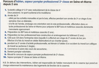 - la notion de parcours (itinéraire, réussi, manque, voie « royale », de « garage »...);