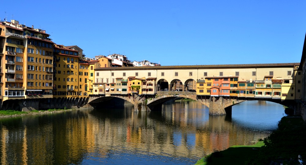 Construit sur le fleuve Arno en 1345, le Ponte Vecchio est un des symboles de Florence et de l'Italie. Il fait partie de ces rares ponts médiévaux qui ont conservé des constructions étagées et leurs échoppes tenues depuis la fin du seizième siècle par des orfèvres. C'est dû en partie à la galerie construite par Vasari qui couronne le pont que les Médicis se sont fait construire en 1565 pour pouvoir se rendre en toute sécurité du palais Pizzi au Palais de la Seigneurie, siège du gouvernement de la cité.