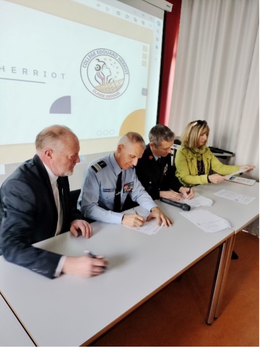 La signature d'une convention pour la création d'une classe défense et sécurité globales a eu lieu le 9 février 2024 au collège Edouard Herriot à la Roche-sur-Yon (Vendée).