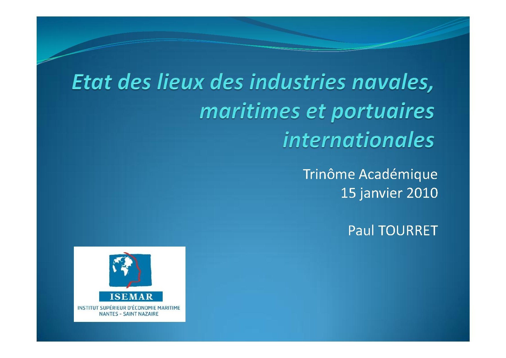 état des lieux des industries navales, maritimes et portuaires internationales (suite)
