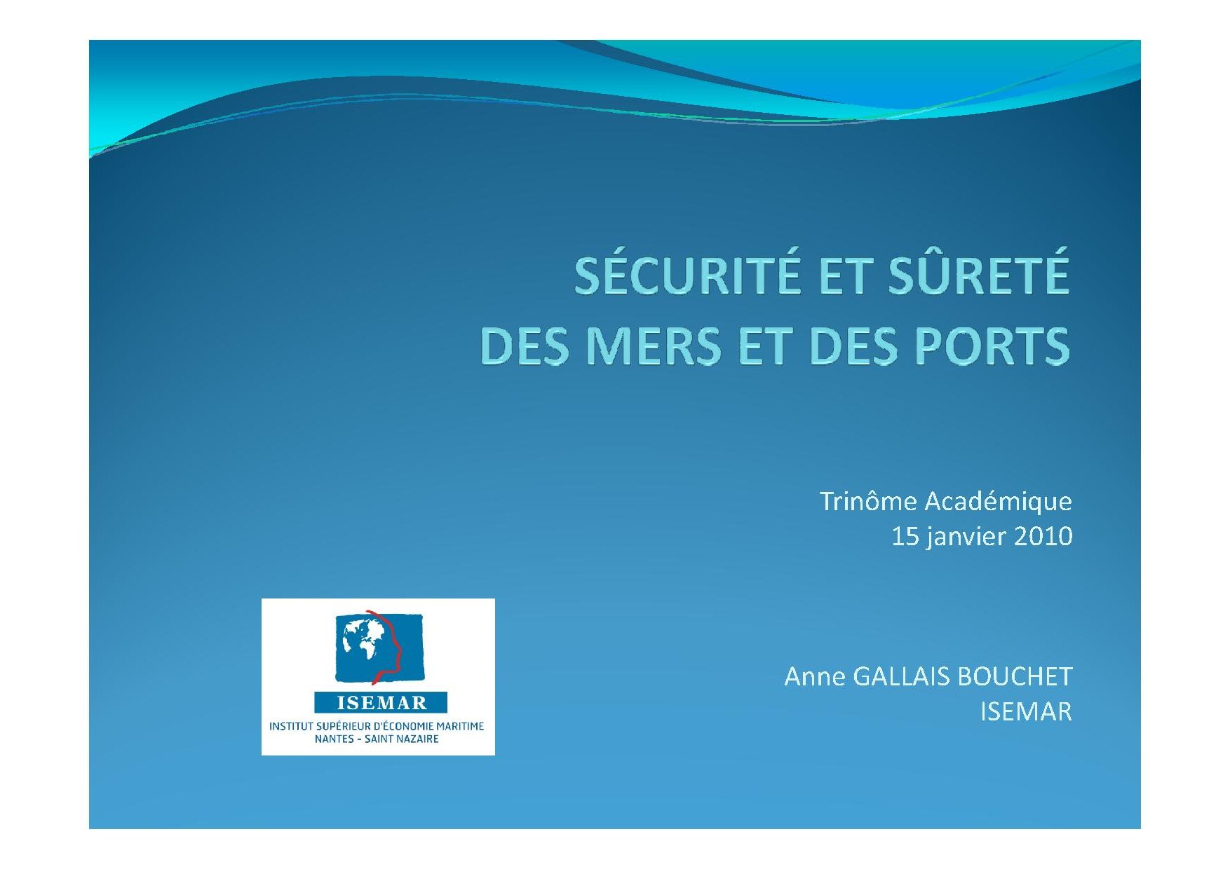 au travers de quatre diaporamas, présentation de l'organisation des ports français, état des lieux des industries navales, maritimes et portuaires internationales et enjeux de sécurité et de sureté des mers et des ports