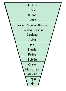 Les mesures effectuées, au sol, jusqu'à 1 m du sol, au-delà, permettent un classement potentiel de la biodiversité des peuplements liés aux différentes essences d'arbres. Ce classement est représenté sous forme d'une échelle de biodiversité potentielle.
