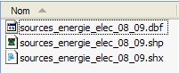 Au terme du processus le fichier sources_energie_elect_08_09.zip est disponible en téléchargement. Après décompression dans un dossier créé pour les accueillir, les trois fichiers sont utilisables dans un logiciel de SIG.