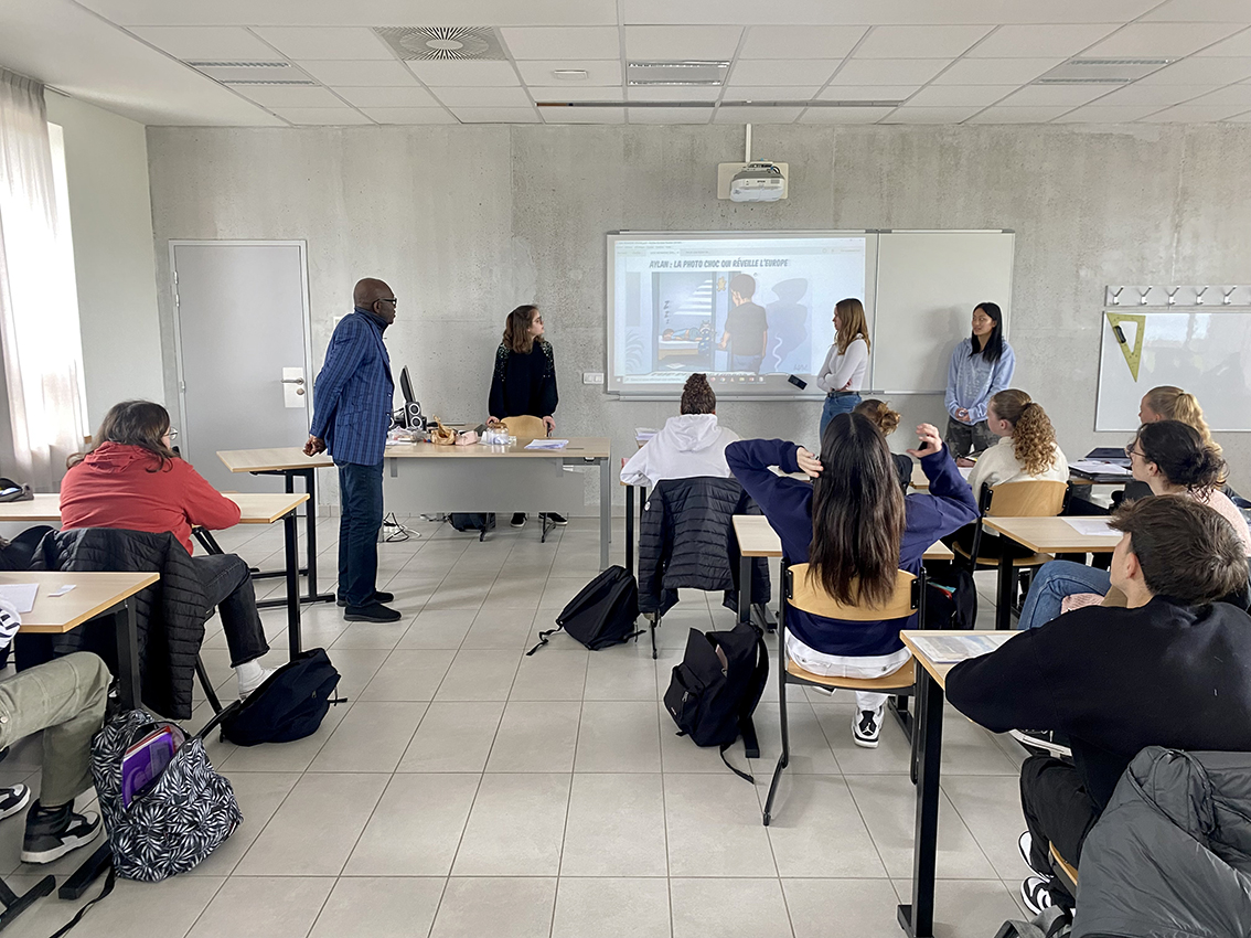 Dans un premier temps, les élèves ont échangé avec M. Bemba Dombé sur son parcours en tant que journaliste d’investigation et fondateur de groupe de presse Talassa dans son pays, en République du Congo (RC = Congo Brazzaville).