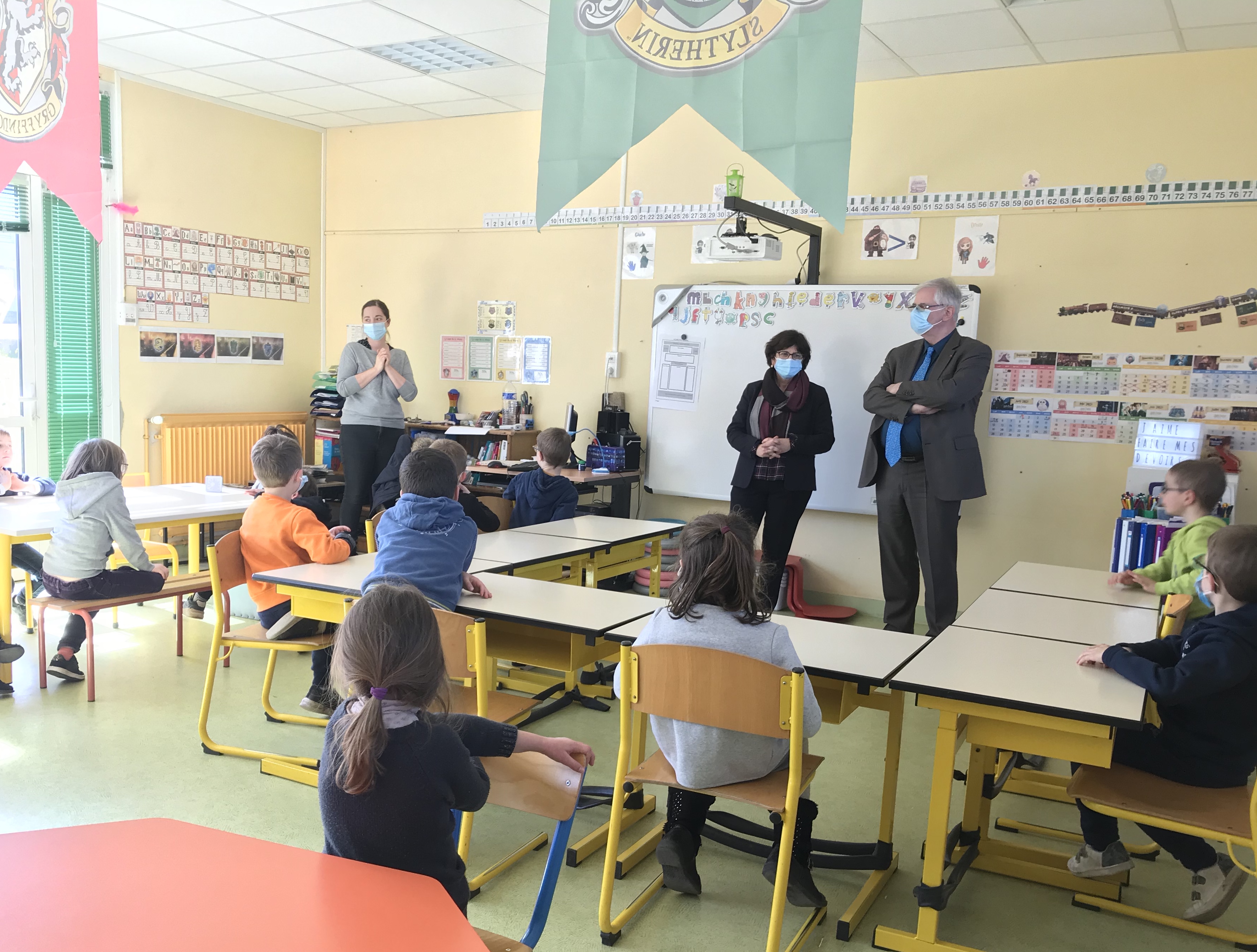 Mardi 23 mars, monsieur le Recteur et l'Inspectrice d'académie de la Sarthe sont venus dans la classe d'Élodie Mirrow, directrice de l'école George-Jean de Courdemanche et enseignante de la classe de GS CP.