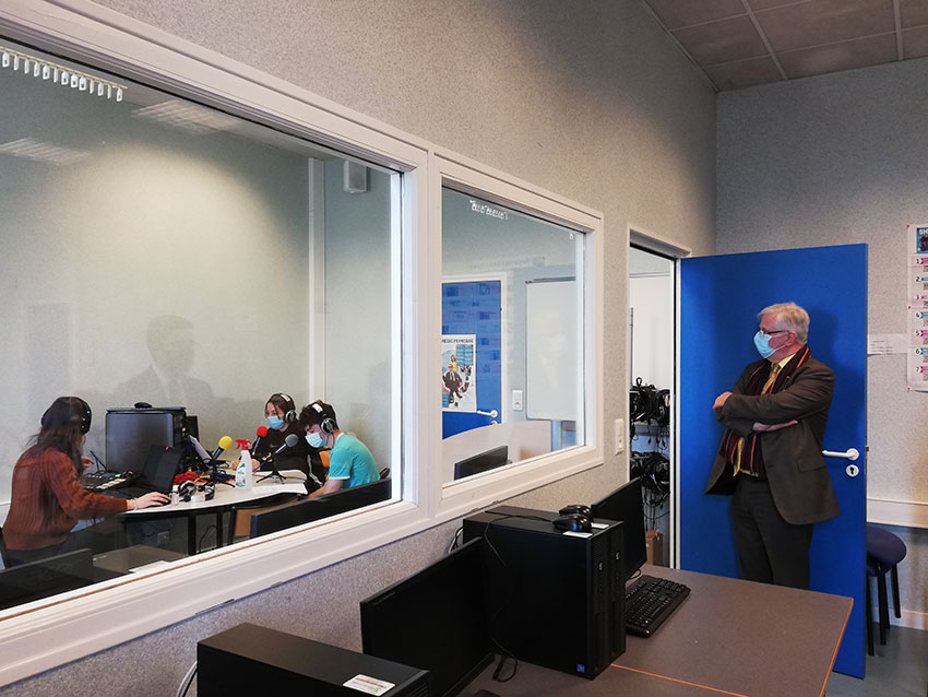 Au lycée Georges Clémenceau (85) Les élèves de la 1re classe à Projet d'éducation aux médias finalisent la rédaction des chroniques, s'entraînent à leur lecture et commencent les enregistrements de l'émission sur la situation des réfugiés au Liban depuis le studio installé au lycée avec Graffiti Urban Radio.