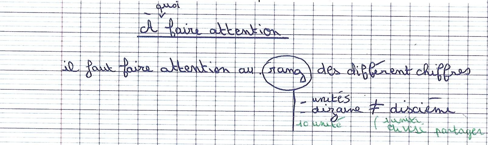 « Notez sur votre cahier ce que nous avons appris à faire aujourd’hui, écrire un point sur lequel je dois faire attention »
