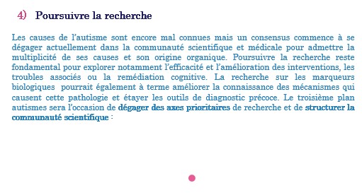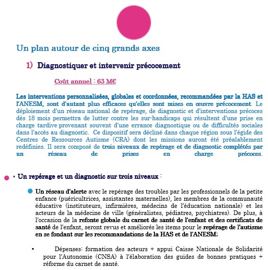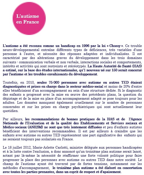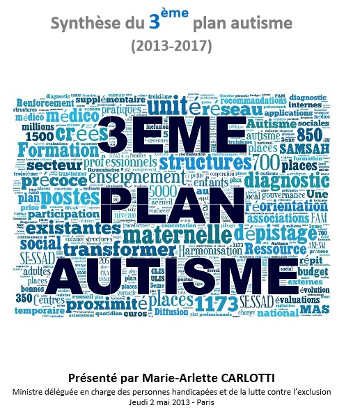 Diagnostic, accompagnement, soutien des familles, formation des acteurs et recherche. C'est autour de ces cinq grands axes que le gouvernement a articulé son troisième plan autisme 2013-2017. Objectif : améliorer l'accompagnement des personnes autistes tout au long de leur vie.