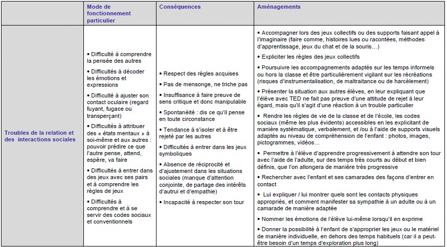 scolariser les enfants présentant des troubles envahissants du développement (TED) et des troubles du spectre autistique