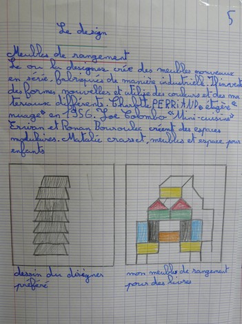 Etape 6 45' et 30' | Présentation d'oeuvres![]() | Le design : un saut dans le temps. Présentation sous forme de diaporama des meubles de rangement design. Echanges à propos des formes nouvelles, des matériaux étonnants... Les élèves s'interrogent sur les usages, l'esthétique de ces meubles. Mémoire Sur le cahier d'HDA, noter quelques références. Faire 2 dessins : dessiner le meuble design qui plait le plus et inventer un meuble de rangement pour sa chambre (2 carrés 10 x 10 cm) Compléter l'affichage de la classe | Design, designer | Diaporama avec les images des meubles de designers. Photocopies couleur des meubles Cahier d'HDA et crayons de couleurs |