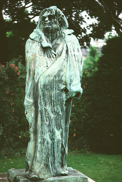 Cette statue que le sculpteur considérait comme la résultante de toute sa vie, le pivot même de son esthétique, avait été présentée en mai 1898 au Salon de la Nationale, où elle fut conspuée par une grande partie de la critique et du public et refusée par son commanditaire, la Société des gens de lettres. Si l'œuvre a tant choqué, c'est qu'elle ébranlait la tradition de représentation monumentale des grands hommes. Après une fine recherche documentaire et iconographique, après des dizaines d'études de corps nus ou habillés, de têtes et de drapés, Rodin abandonna le projet d'un portrait ressemblant, élimina tout accessoire, tout attribut ou figure allégorique, pour mettre la vigueur de son modelé et le jeu des ombres et des lumières au seul service d'une représentation de la force créatrice de l'écrivain visionnaire.
