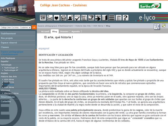 Le travail autour du tableau de Goya, sera réalisé avec des élèves de classe de 4è LV2 espagnol, et est prévu au cours du 2ème trimestre de l'année