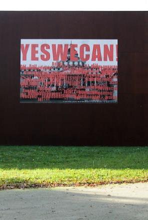 - Huang XIAOPENG YESWECAN!YES!!YES!!! 2012. Tirage numérique 375 x 550 cm. Œuvre réalisée dans le cadre des XXVèmes Ateliers Internationaux du Frac des Pays de la Loire. Don de l’artiste en 2012. Collection du Frac des Pays de la Loire.