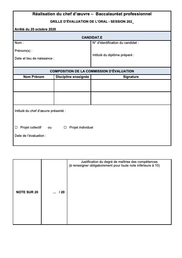 Grille d'évaluation pour l'oral du Chef d'oeuvre en bac Pro (DOCX - 23 ko)