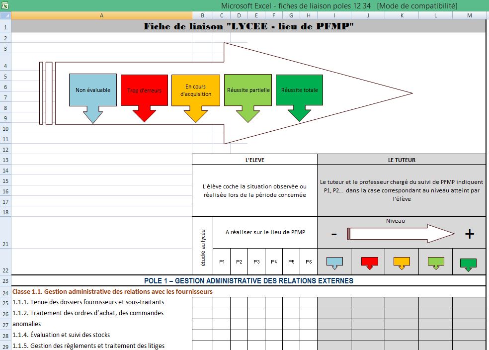 Cette ressource, proposée par l'équipe pédagogique du lycée Touchard Washington, est constituée d'un livret de liaison, d'un livret d'évalusation ainsi que des grilles au format Excel.