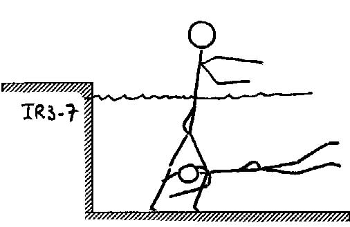 10m. Revenir sur le dos jusqu'à l'échelle et descendre s'asseoir