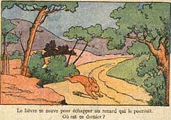Le lièvre se sauve pour échapper au renard qui le poursuit. Où est ce dernier?