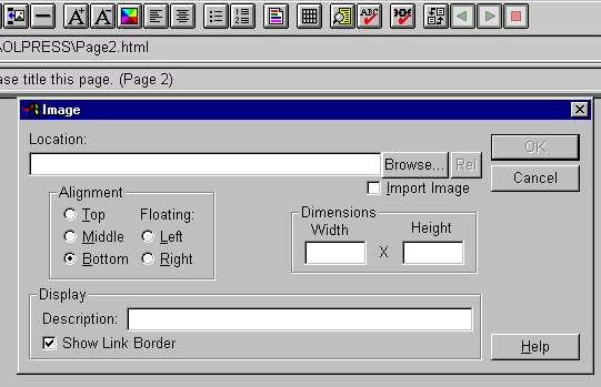 Using the "image" tool, you open the image box. Browse to choose the image in your folder and press "OK" | ![]() |