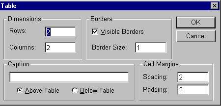 Using the "table" tool, you open the table box. Choose dimensions and "OK". You can change your table later by right click on it | ![]() |