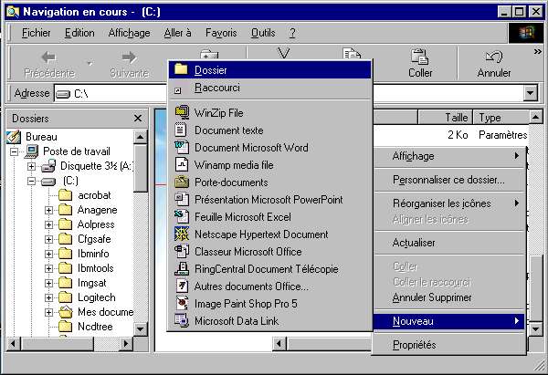 2 By clicking the right button on the right side of the explorer window, you will open a contextual menu. Click left on "new" and then on "folder" or "dossier" | ![]() |