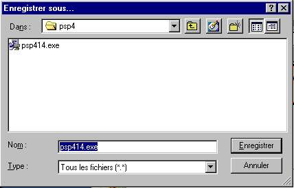In the URL line, write the good address : http://www.winsite.com/info/pc/winnt/misc/psp414.exe/ (if you are on line you can download by clicking on this link). Click on the link « psp414.exe... ». |
