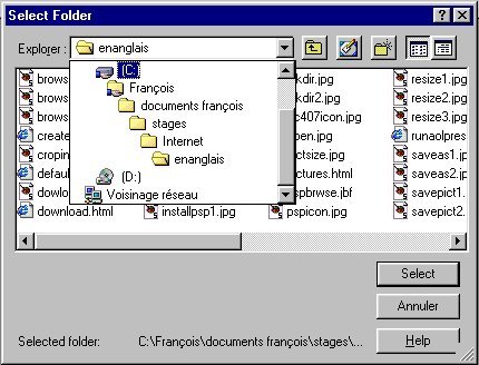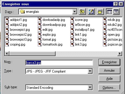 In the "save as" box, choose the good folder, the good file type (JPG or GIF) and enter a file name ending by ".jpg" or ".gif". You must only use small letters and numerals without having any space and using special characters. | ![]() |