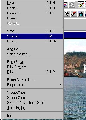 The picture is now ready to be saved. Use the "Save as" command of the "file" menu. |