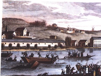Celles-ci consistaient à attacher 3 à 400 personnes ensemble, à les transporter dans des barges dont la coque avait été préalablement percée, à amener ces bateaux au milieu de la Loire, d'enlever le bouchon puis d'admirer le carnage. Cela allait assez vite, à cause du poids élevé de l'embarcation. |