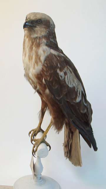 Ce petit rapace est un bon chasseur, excepté sa taille qui l'empêche de maîtriser de grosses proies. Il a une très bonne endurance et pour les attraper, il s'efforce de faire s'envoler ses victimes, fatiguant les oiseaux blessés et malades. Pendant les grandes chasses, il se régale en ramassant les charognes. Il peut capturer un large éventail de proies, qui varie selon l'abondance relative des espèces accessibles dans les lieux occupés, proies parmi lesquelles dominent petits mammifères et jeunes oiseaux. Ce busard peut donc consommer des proies très diverses : amphibiens, reptiles (couleuvres), oeufs et poussins, petits mammifères et rongeurs (campagnols, rats,...), des oiseaux aquatiques et parfois des poissons. Par contre en période internuptiale, il pratique couramment la nécrophagie et mange alors les proies moribondes, des cadavres ou même des charognes. Il trouve sa nourriture sur ses lieux de vie en général, dans les zones humides, les roselières et aux alentours de marais ou d'étangs. Le Busard des roseaux a bien souvent tout sur place pour se nourrir. Collections du Muséum d'Histoire