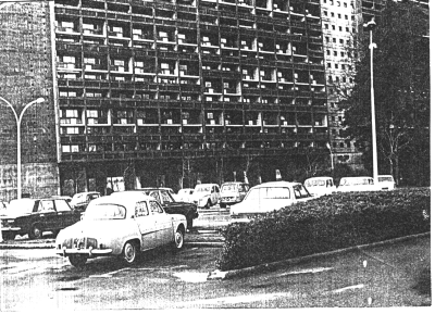 Plus de 1000 personnes de toutes catégories sociales habitent cet immeuble qui, pour son époque est en avance: W-C intégrés, cuisine aménagée, double vitrage. De longs couloirs séparent les appartements en deux parties: les descendant et les montants.