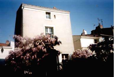 | Cette photo a été prise de la rue Cloâtre en même temps que la précédente. On voit la façade sud, la cour et la glycine. |