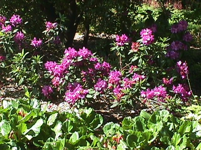 Rhododendron : Arbuste à feuilles persistantes ; à fleurs rose et rouge.