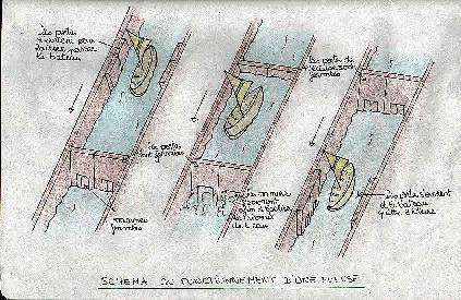 Si le bateau va de l'amont vers l'aval, les portes côté amont sont ouvertes pour que le bateau entre dans l'écluse. L'éclusier ferme les portes côté amont, ouvre les vannes afin d'égaliser le niveau d'eau et ouvre les portes côté aval pour que le bateau puisse quitter l'écluse