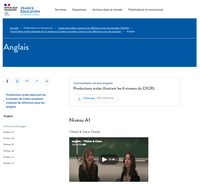 Le site France Education International met à disposition des vidéos illustrant les 6 niveaux du Cadre européen commun de référence pour les langues en anglais.