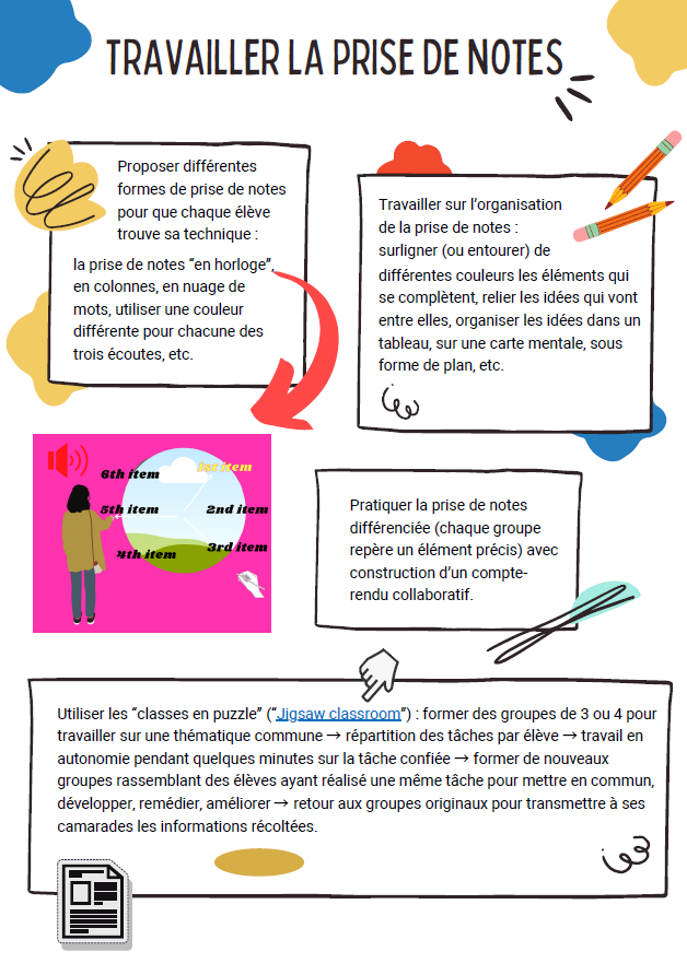 Dans cette fiche, vous trouverez des pistes afin de travailler la prise de notes avec vos élèves.