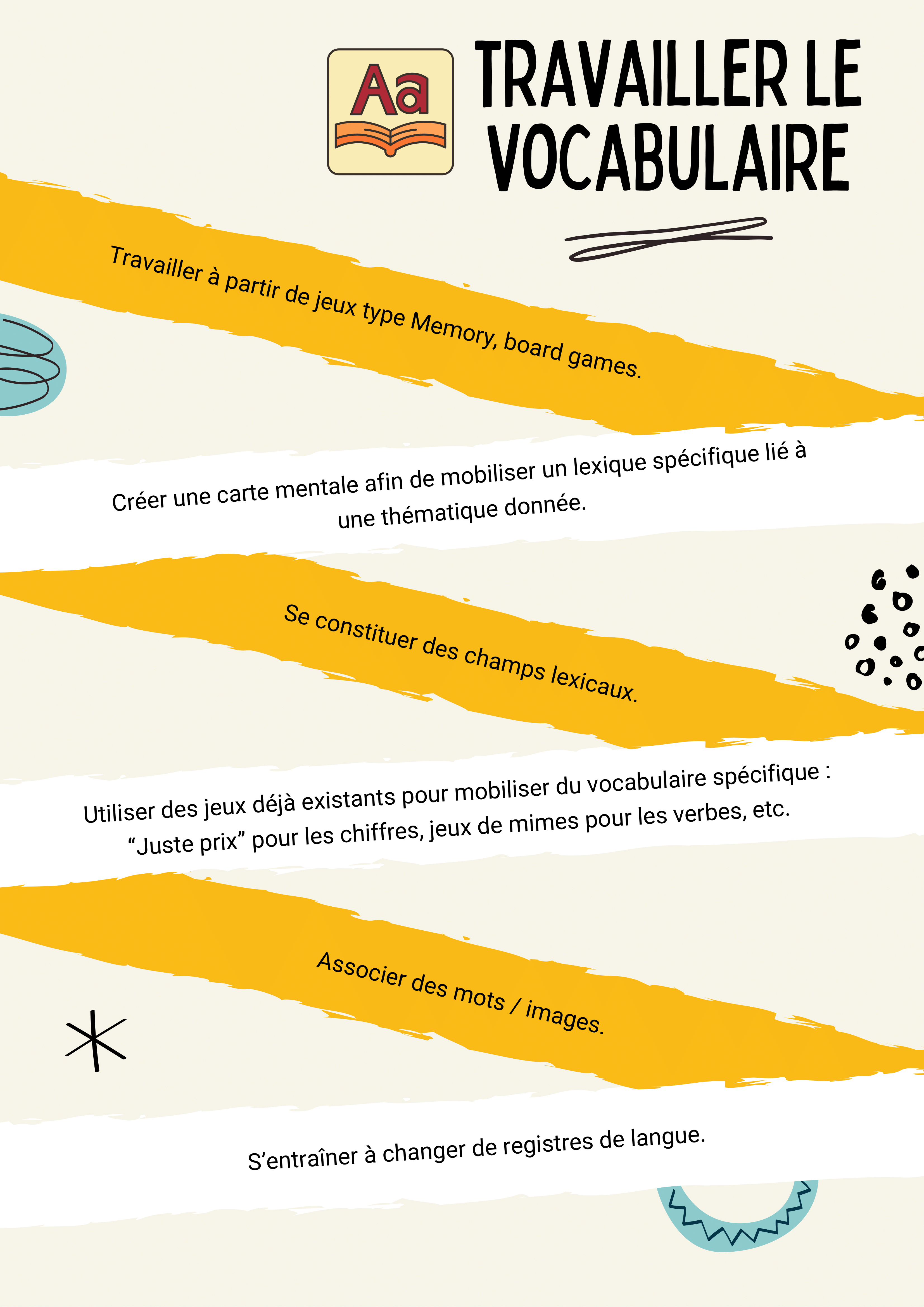 Dans cette fiche, vous trouverez des pistes afin de travailler le vocabulaire avec vos élèves.