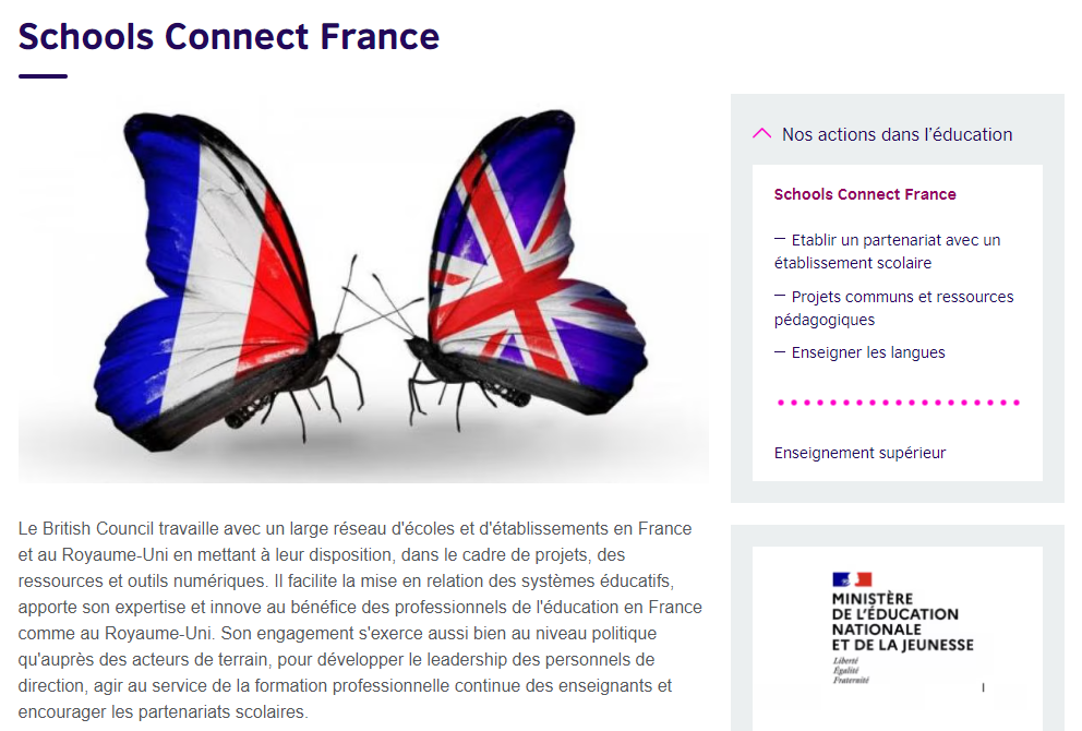 Découvrez dans cette ressource le site "School connect France" du Bristish Council en partenariat avec le Ministère de l'Éducation Nationale afin de développer des collaborations entre des établissements britanniques et des établissements français.