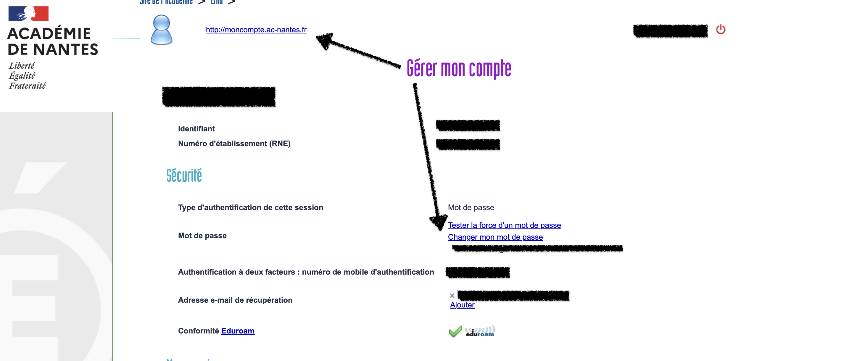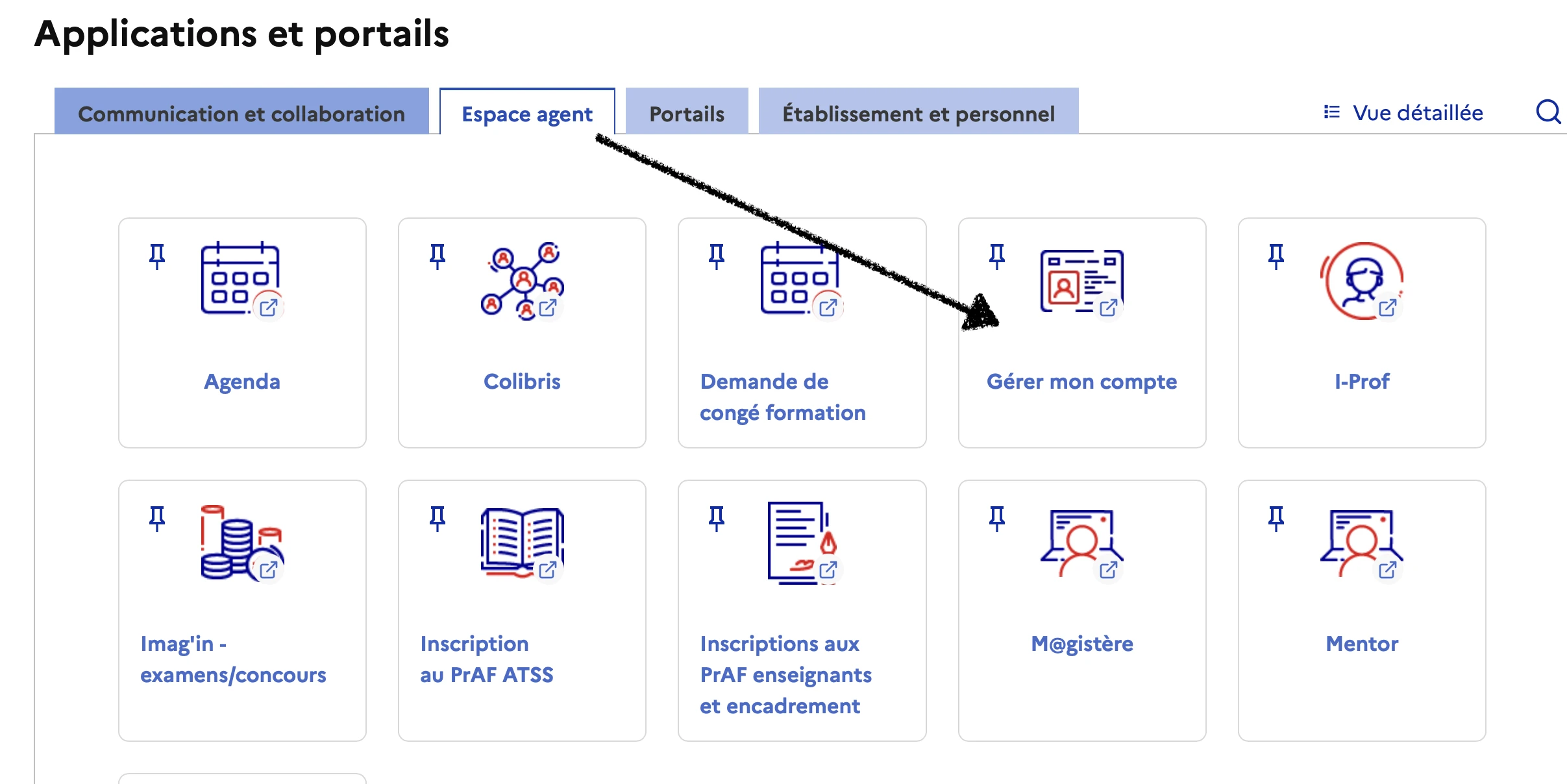 Pour modifier son mot de passe, et pour rajouter une adresse mail de récupération, il faut aller sur « Gérer son compte » sur Etna, dans l’onglet « Espace Agent ».