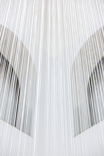 Susanna Fritscher, travaille à partir de l'architecture et de la lumière. L'artiste est connue pour ses interventions « minimales » et aériennes qui s'inscrivent en dialogue avec l'espace qu'elles occupent. Pour ce projet, Susanna Fritscher expérimente un nouveau matériau : le fil de silicone transparent qui vibre et accroche la lumière. Elle imagine une œuvre qui remplit l'espace, le souligne, ou l'irradie pour conduire le visiteur à se positionner et se déplacer. Scandant les galeries aux quatre coins du Patio, une sculpture sonore transforme les coursives en lieu d'écoute. Cette installation offre un cadre immersif dans lequel la relation au spectateur constitue un élément de tension.