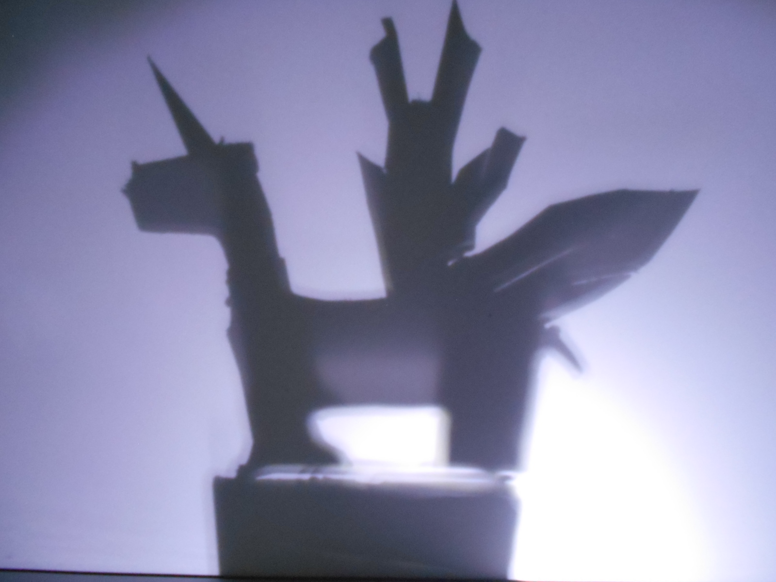 Les photographies révélaient des cadrages différents : certaines se concentraient sur les ombres, d’autres sur l’ensemble du dispositif tandis que d’autres élargissaient la prise photographique à la manipulation des lumières par les élèves du groupe. Ce constat a abouti à une réflexion sur le statut de ces images qui semblaient parfois documentaires et parfois artistiques …. mais plus largement, elles questionnaient aussi le statut de l’installation : où est l’œuvre ? Est-ce les sculptures ? Les ombres ? ou le tout?)