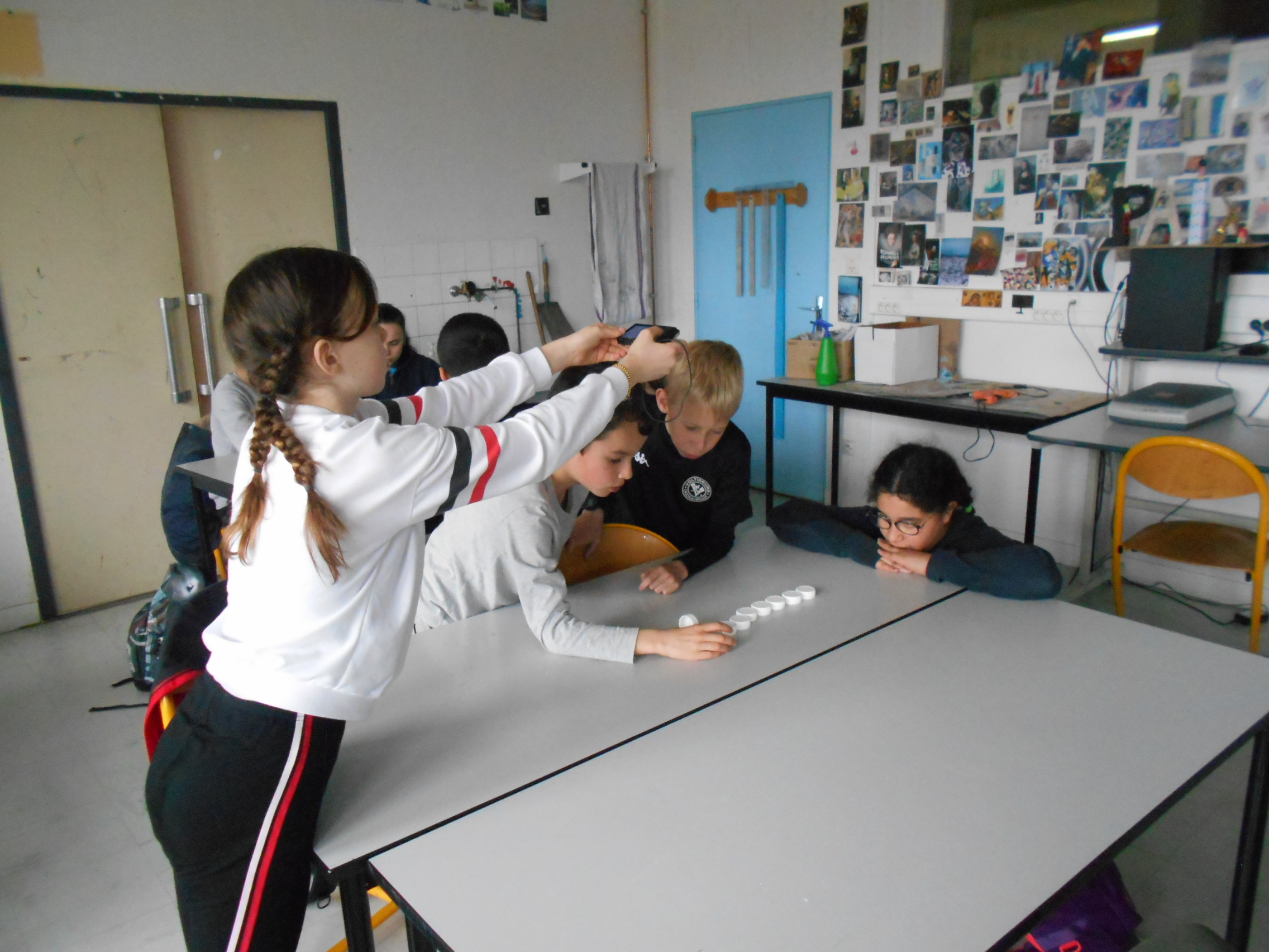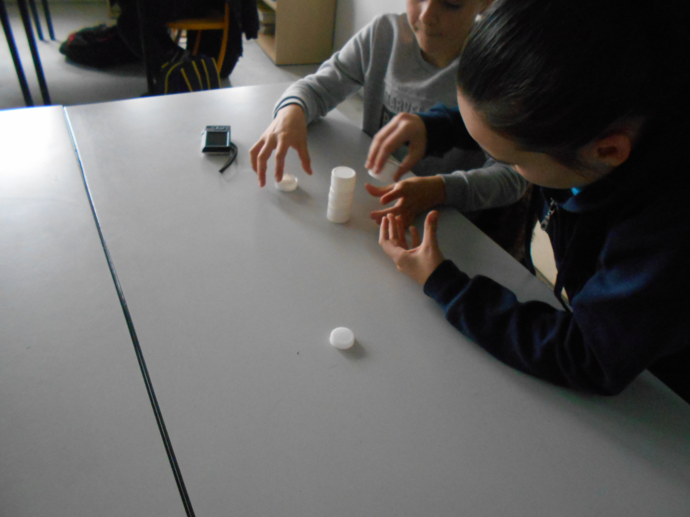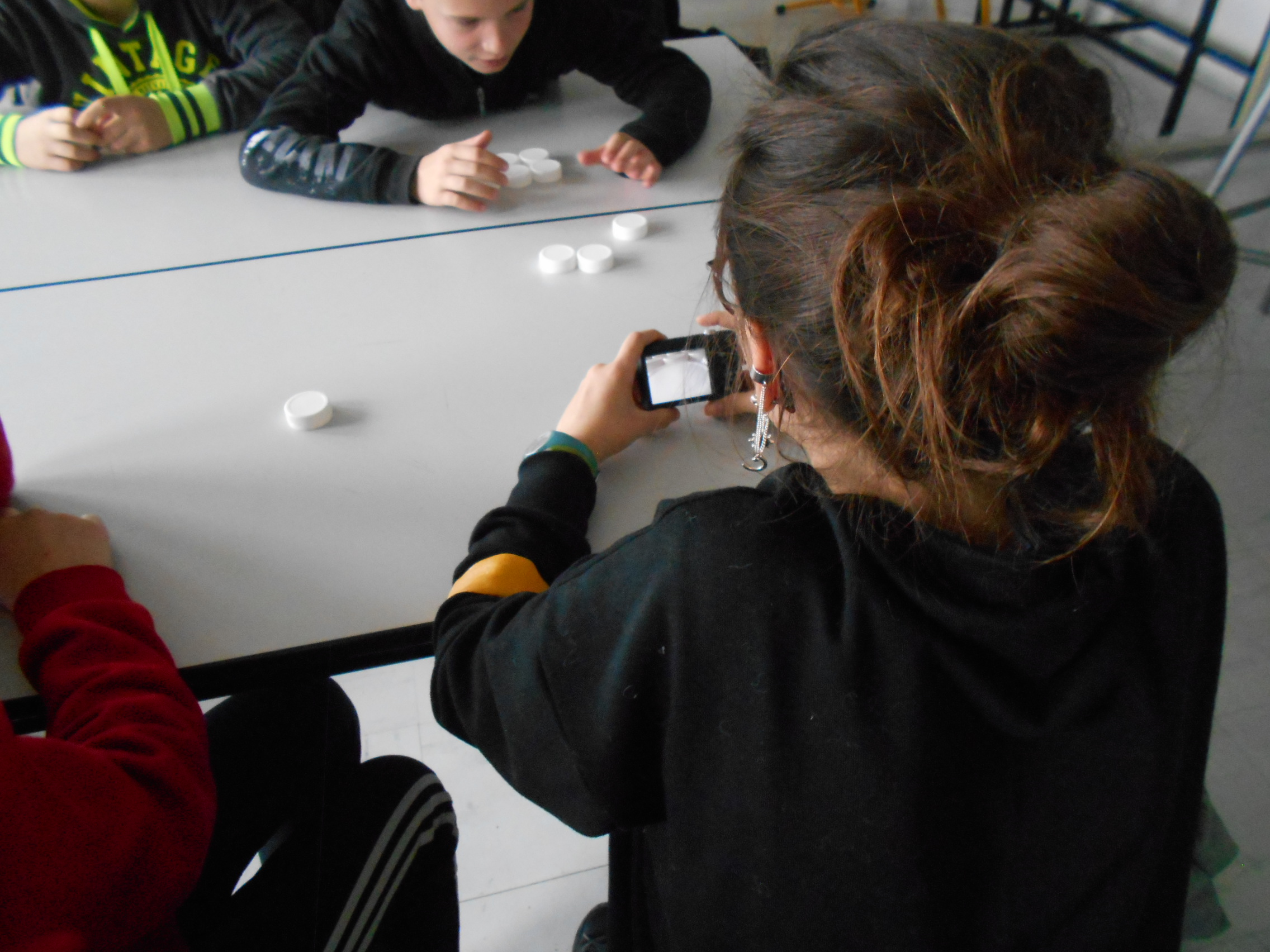 Mise à disposition de 10 bouchons blancs pour chaque îlot (groupe de 4 élèves) + appareil photo + une incitation "illusion d'abondance" inscrite au tableau.