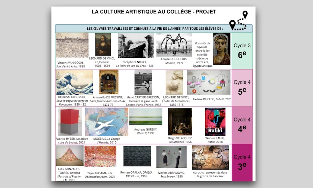 Il en est de même quand une équipe pédagogique souhaite travailler un PEAC avec des oeuvres significatives et des repères partagés en histoire des arts.