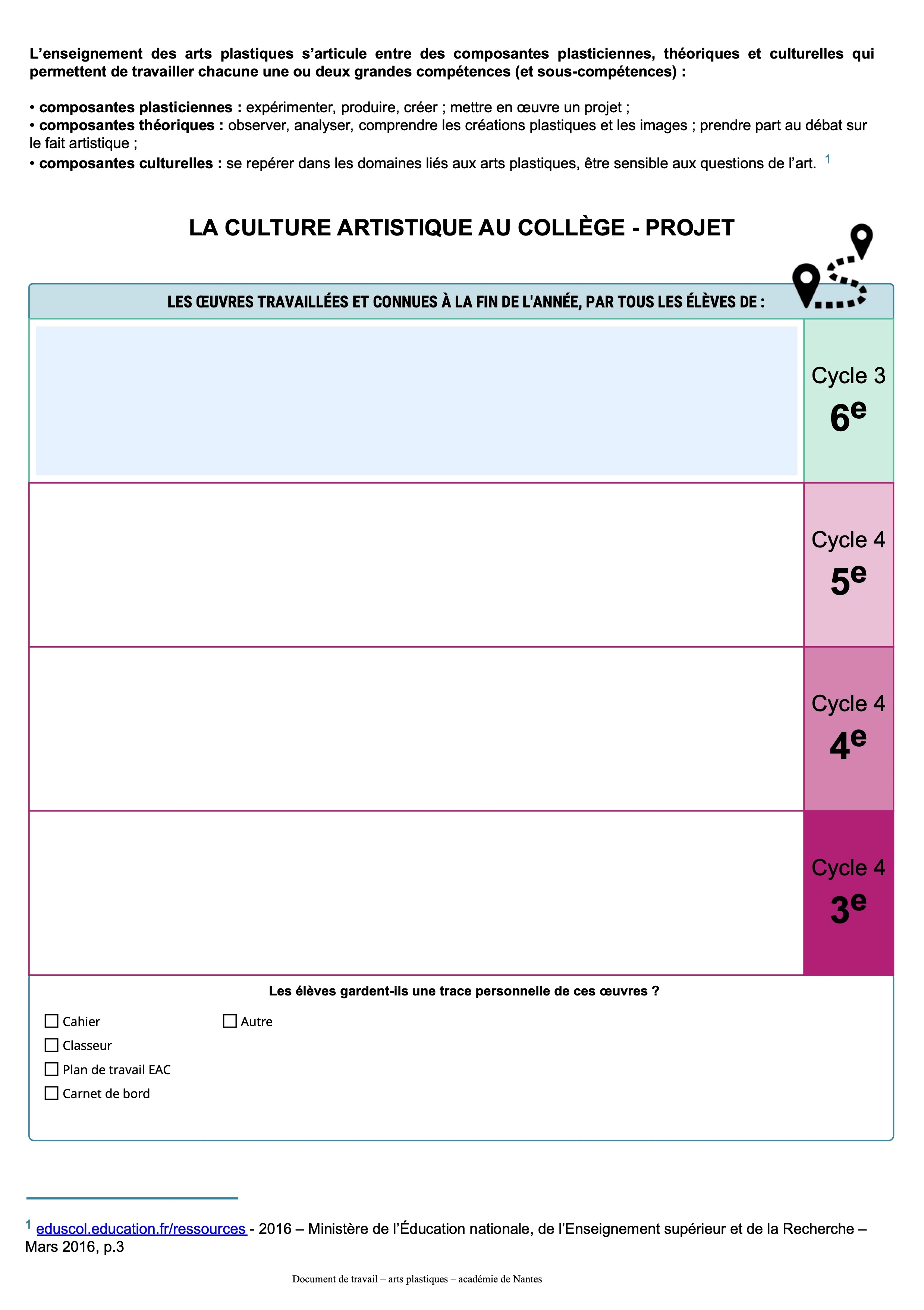 Fiche projet d'enseignement culture artistique hda en arts plastiques