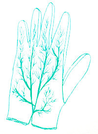 | "La main, partie du corps prolongeant le bras, est faite d'une paume et de cinq doigts divisés en phalanges, au pouce opposable. Sa préhensibilité forme l'habileté humaine, apte à toucher, saisir, briser, composer les objets. Corps, elle est naturelle; réalisatrice d'une pensée, elle relie un savoir poïétique au monde. |