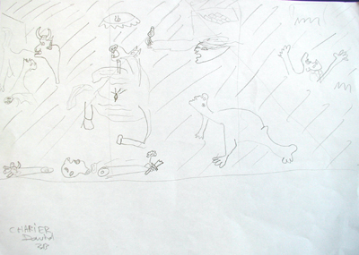 Les travaux de peinture sont réalisés à partir de deux séries de croquis rapides (le premier fait de mémoire, le second visant à dessiner ce qui est jugé comme essentiel dans l'oeuvre).