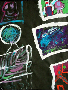 deuxième réalisation papiers découpés réhaussés de pastels secs