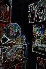 Samia a décidé de suprimer le rouge, pour elle, l'effet de lumière est plus réussi en créant un contraste entre les jaunes orangés (lumière) et le gris (couleur neutre). Elle a également fait le choix de ne représenter qu'une partie de son image, le reste étant trop "confus".