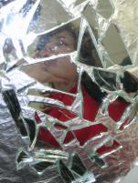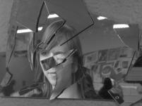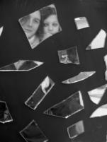 | "J'ai voulu donner, avec les morceaux de miroir cassé, un effet brisé et dispersé à la photo, on aperçoit que l'essentiel, les visages, il n'y a aucun décor, le regard est donc porté vers les visages. J'ai voulu mettre la photo en noir et blanc pour donner un effet vieux et comme d'anciens souvenirs". Christine |
