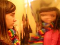 | "J'ai essayé de montrer qu'on pouvait être très différent de ce qu'on imagine de soi même. Ce que le miroir renvoie, est-ce la seule réalité ? Ce que j'imagine, moi, est-ce la seule réalité ? Ca montre aussi que le regard des autres (représenté ici par les miroirs), peut-être totalement à l'opposé de l'image que je me faisais de moi. D'ailleurs, l'appareil n'a pas vu les mêmes choses que moi dans les miroirs. Le résultat n'est donc pas celui que j'avais en face de moi. C'est un regard différent, il est déformé. C'est pourquoi j'ai utilisé des miroirs déformés et une prise de vue u peu floue mais je ne savais pas trop à quoi m'attendre quant au résultat".Fanny |